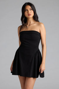 Short, sweet, and soiree-ready! Effortlessly chic and versatile, the strapless design and skater silhouette flatter your figure, while the mini-length hem adds a playful touch.