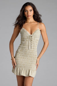 So on trend and sweeter than pie, this gingham mini dress is essential for spring-to-summer fun! This mini-length dress is made from woven fabric and features a charming gingham print that exudes effortless style.  The scoop neckline and tank shoulder straps flatter your figure, while the form-hugging fit accentuates your curves. Complete the look in cute sandals and a mini purse!