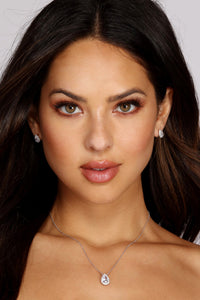 Este sofisticado conjunto de collar y aretes de zirconia cúbica deslumbrará la habitación. La delicada cadena del collar conduce a un dije en forma de lágrima en el centro. El paquete también viene con hermosos aretes en forma de lágrima a juego para que puedas usarlos juntos y lograr un estilo hermoso. ¡Complementa con este set para el brunch con las chicas! Combínalo con un coqueto vestido floral y lindas cuñas .