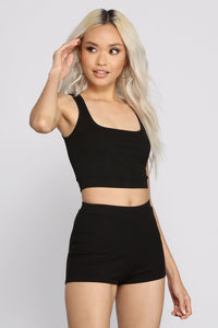 ¡Prepárate para querer descansar todo el día, todos los días con este adorable top corto de pijama de punto acanalado! Cuenta con un tejido de punto cómodo y un ajuste ceñido. Combínalo con unas lindas zapatillas gruesas para un día de maratón de películas.