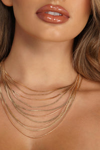 Capa de glamour con este collar. Para los días en los que te sientes un poco más, ponte este collar de cadena de 10 hileras que presenta un diseño escalonado para hacer una declaración de estilo. Completa tu look con un vestido midi escotado y cuñas .
